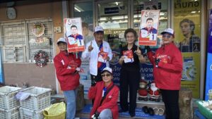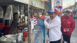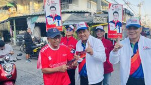 วันที่ 21 ธ.ค. รศ.ดร.วิระศักดิ์ ฮาดดา ผู้สมัคร ชิงตำแหน่ง นายก อบต.คลองสาม หมายเลข 1 ทีมรักคลองสาม พร้อมทีมงานผู้ช่วยหาเสียงออกเดินเท้าพบปะประชาชนภายในหมู่บ้านพฤกษา12 ม.2 ต.คลองสาม อ.คลองหลวง จ.ปทุมธานี โดยแจกใบแนะนำตัวและใบนโยบายในการหาเสียงแจกให้กับประชาชนที่มาเดินจับจ่ายซื้อของในตลาดสดในช่วงเช้า