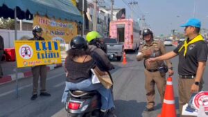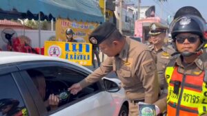 นนทบุรี ตร.แจกสติ๊กเกอร์ เมาไม่ขับ หน้าด่านเตือนใจหลังวันสิ้นปี นนทบุรีติดอันดับ 1 เมาแล้วขับ