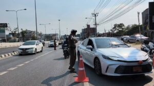 ระหว่างวันที่ 30 ธ.ค. 68 – 5 ม.ค. 69และเพิ่มจุดอำนวยความสะดวกประชาชน ด่านชุมชน ถนนราชพฤกษ์ทำบลบางรักน้อย อำเภอเมืองนนทบุรีจังหวัดนนทบุรี ยับซี่ปลาดภัย ลดความเร็ว ลดอุบัติเหตุเมาไม่ขับ สวมหมากนิรภัย แนะ 4 ข้อห้าม ห้ามขับรถเร็ว ห้ามเมาแล้วขับ ห้ามโทรแล้วขับรถ ง่วงห้ามขับ แนะ2ต้อง ต้องสวมหมวกนิรภัย ต้องคาดเข็มขัดนิรภัย และทางเจ้าหน้าที่ตำรวจได้ทำการแจกสติ๊กเกอร์เมาแล้วขับ ให้ประชาชนไว้เป็นที่เตือนใจเพื่อลดอุบัติเหตุ