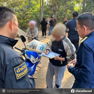 ต่อมา พ.ต.ท.วีระพล กันธวงศ์ รอง ผกก.2 บก.สอท.4 และ พ.ต.ท.เอนก ถิ่นนคร รอง ผกก.2 บก.สอท.4 พร้อมด้วย พ.ต.ต.จิรัฏฐ์ จันเย็น และ พ.ต.ต.สุวรรณ ทิศลา สว.กก.2 บก.สอท.4 ได้นำกำลังตำรวจไซเบอร์สนธิกำลังร่วมกับเจ้าหน้าที่ กสทช. นำหมายค้นของศาลจังหวัดแม่สอดที่ 1/2569 และ ค 2/2569 เข้าตรวจค้นสถานที่ดังกล่าวทั้ง 2 จุด