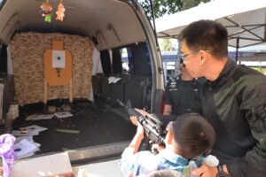 1. บูธหน่วยปฏิบัติการพิเศษ “สยบไพรี” เปิดโอกาสให้น้อง ๆ ได้สัมผัสยุทธภัณฑ์จริง พร้อมเรียนรู้ภารกิจสุดท้าทายของเจ้าหน้าที่ตำรวจ