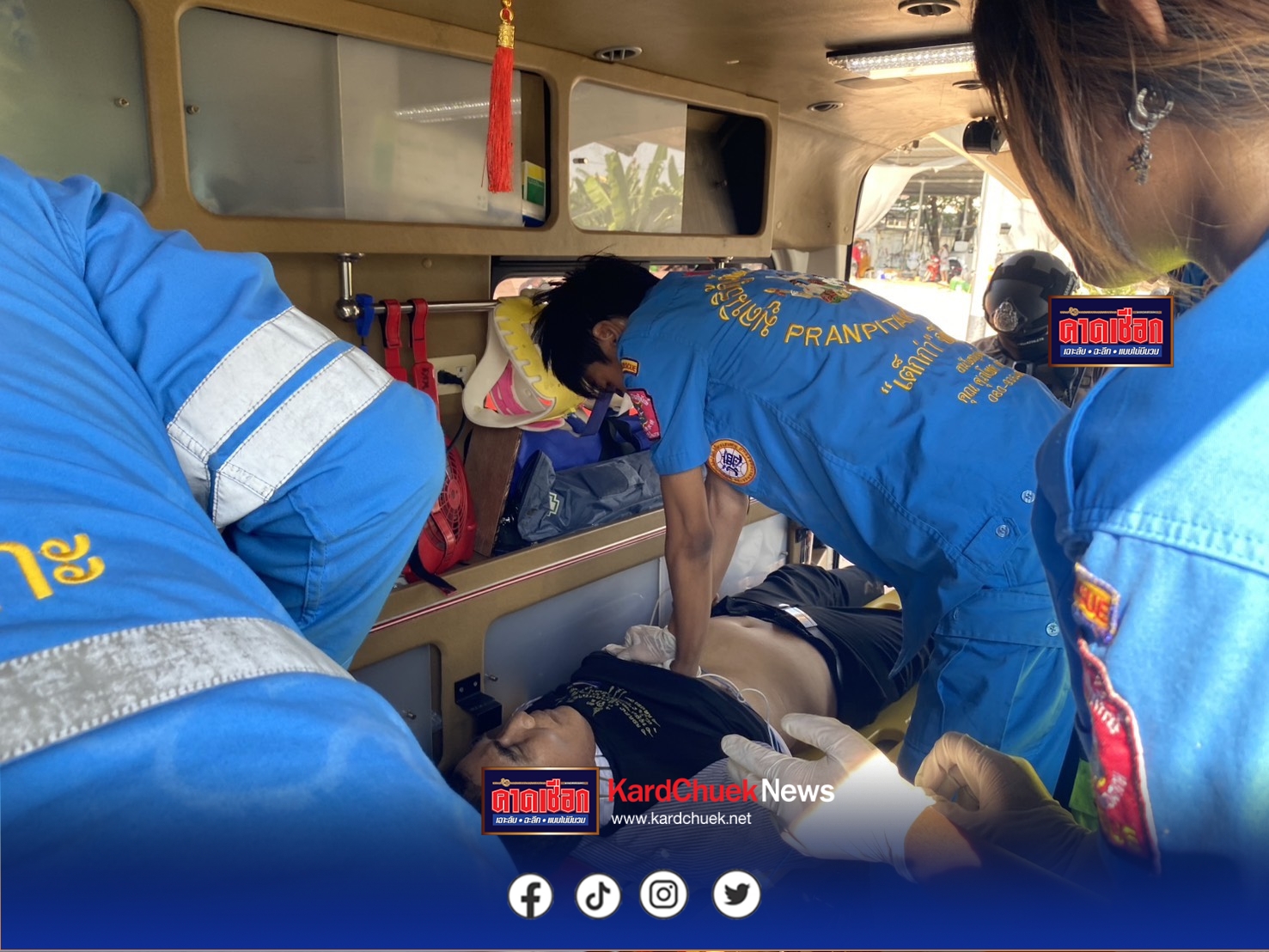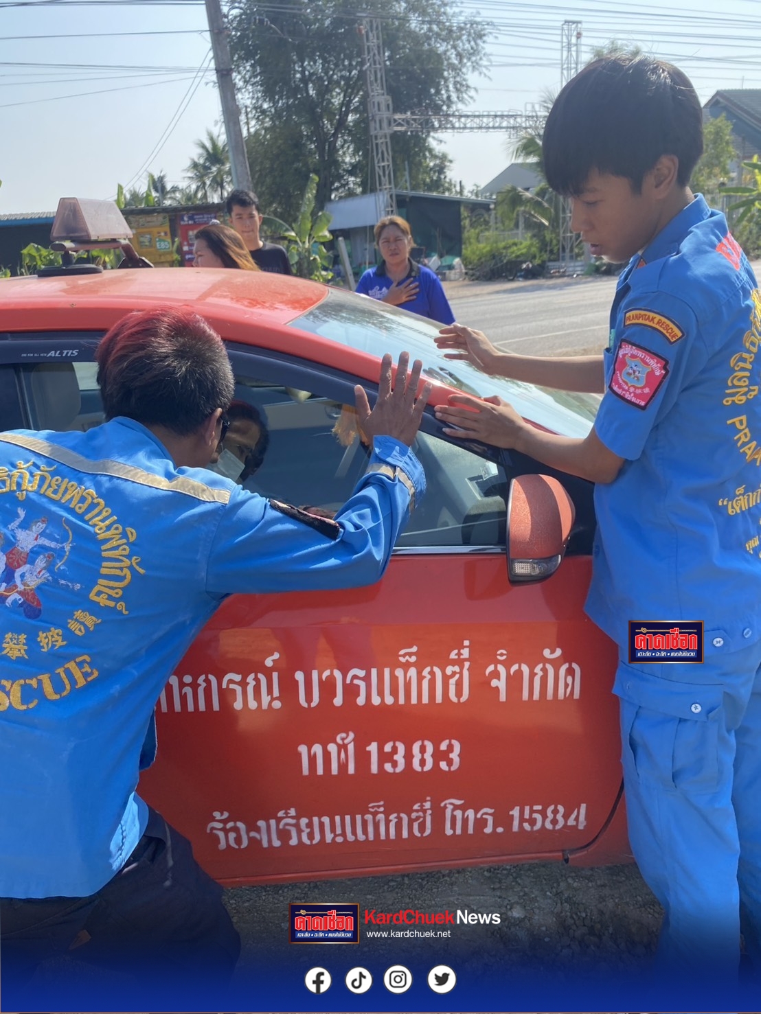 วันที่ 19 ม.ค.2569 พ.ต.ต.นิรชา หนูผาสุข สว.สอบสวน สภ.สามพราน จ.นครปฐม รับแจ้งเหตุมีรถแท็กซี่พุ่งชน กองดินริมถนนมีผู้หมดสติอยู่ในรถ บริเวณใกล้เคียงโรงเรียนคลองจินดา หมู่10 ต.ตลาดจินดา อ.สามพราน จ.นครปฐม จึงรุดไปตรวจสอบพร้อม มูลนิธิกู้ภัยพรานพิทักษ์ “เต็กก่า” จีปั้งเกาะ