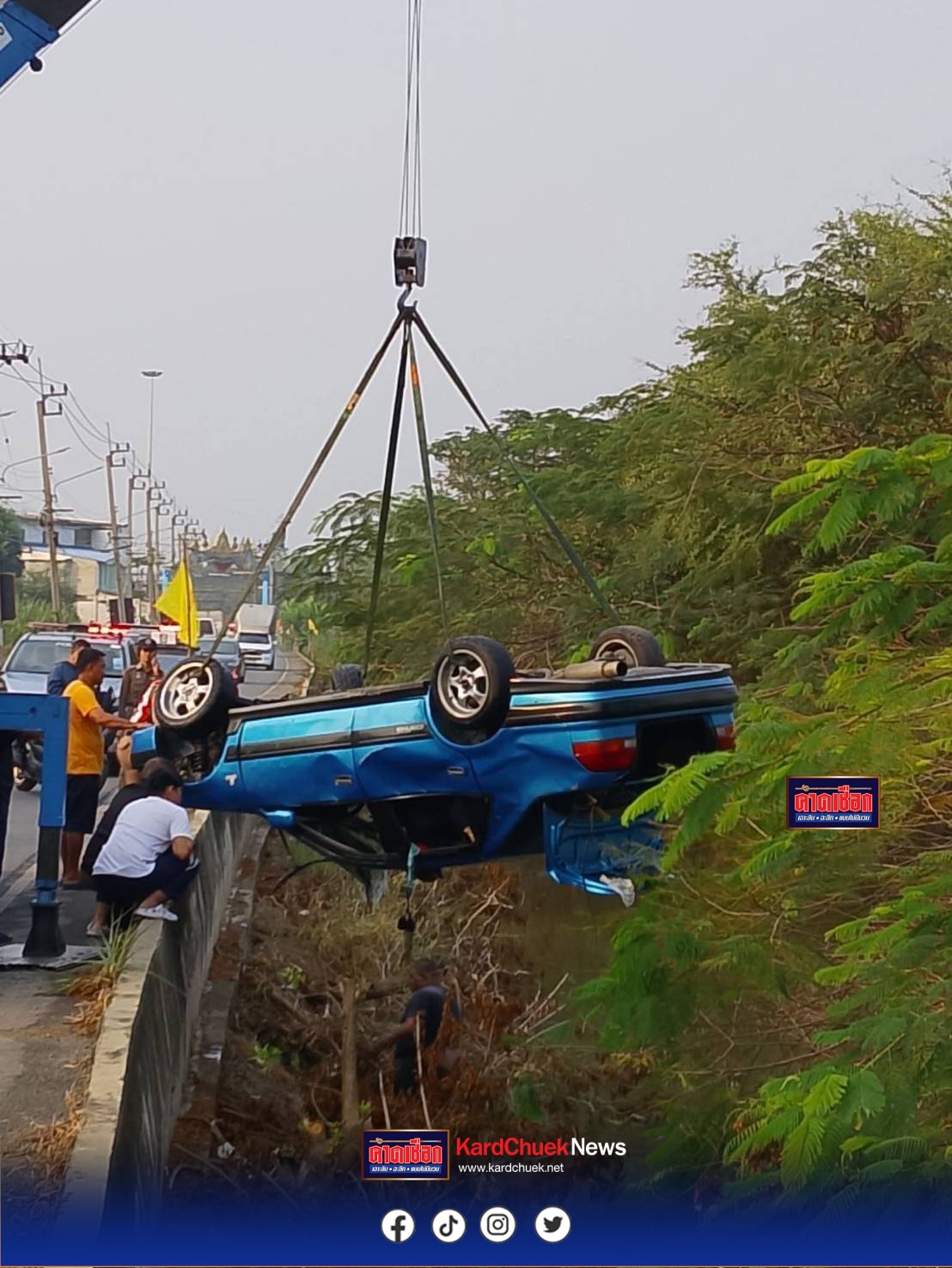 นนทบุรี สลด พนักงานบริษัทขับเก๋งพุ่งตกคลองเสียชีวิตคาสายโทรศัพท์แฟนสาว