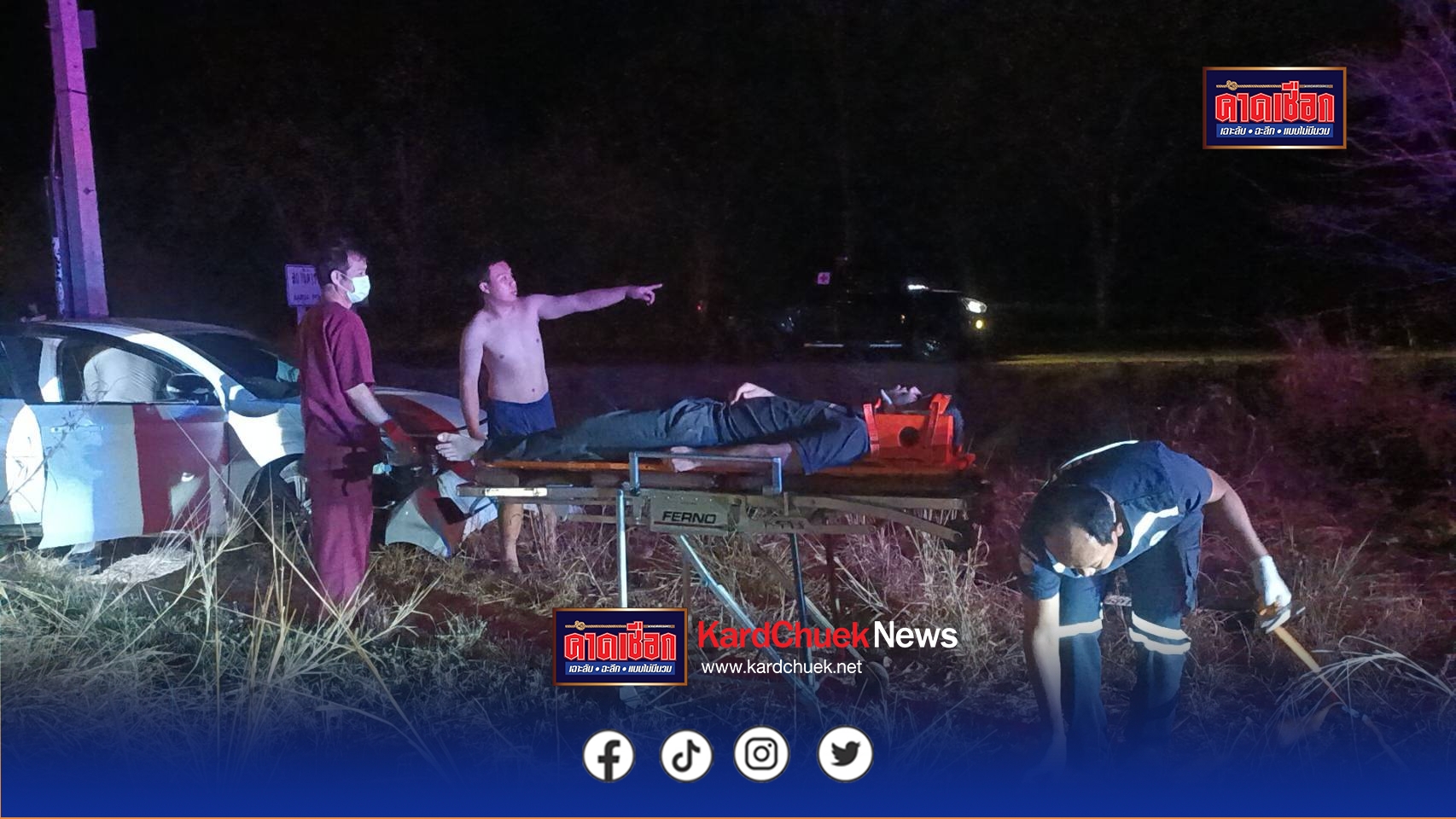 ปราจีนบุรี-เก๋งเสียหลักตกถนนคนขับสลบคารถ คาดหลับใน