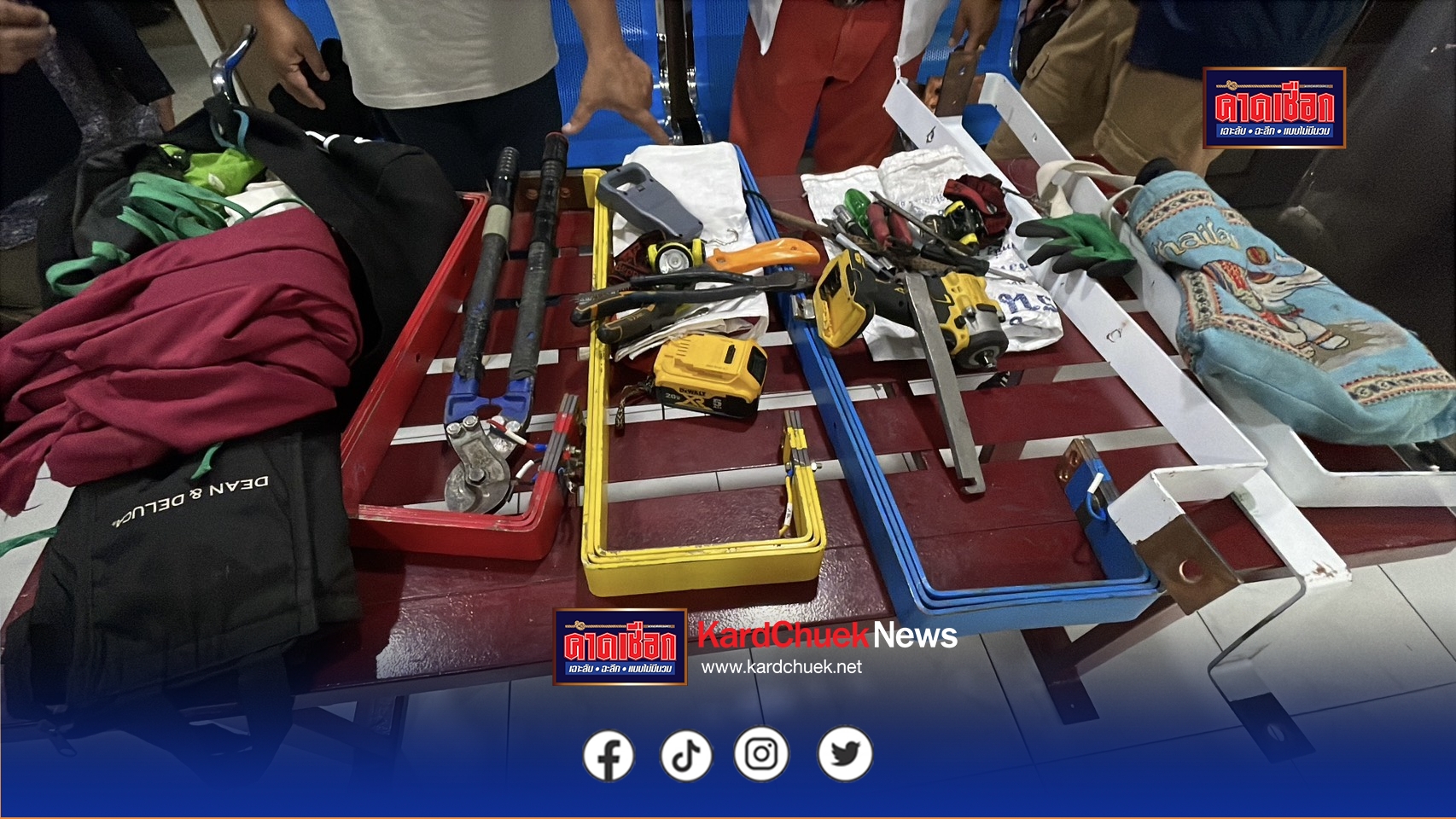จากการตรวจค้นตัวไม่พบสิ่งของผิดกฎหมาย แต่เมื่อค้นรถจักรยานยนต์ พบของกลางหลายรายการสะพานไฟ 12 ชิ้น(บัสบาร์ทองแดง) ไฟฉาย 2 ชิ้น คีมตัดสายไฟ คัตเตอร์ ไขควง บล็อกถอนน็อตไร้สาย เครื่องชั่งน้ำหนัก เลื่อยตัดเหล็กพบอยู่ภายในถุงผ้าสีดำใต้รถจักรยานยนต์