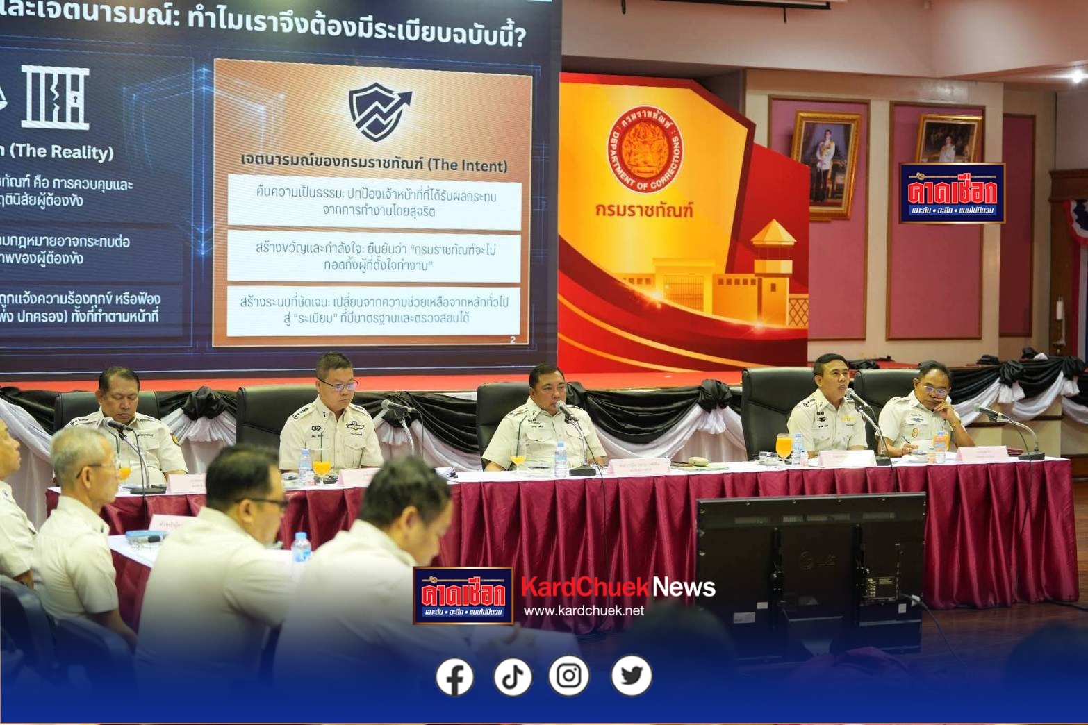 วันที่ 30 มีนาคม 2569 เวลา 09.00 น. ที่ห้องสัมมนากรมราชทัณฑ์ชั้น 3 จ.นนทบุรี พ.ต.ท.ประวุธ วงศ์สีนิล อธิบดีกรมราชทัณฑ์ เป็นประธานการประชุมผู้บริหารงานราชทัณฑ์ทั่วประเทศ ครั้งที่ 1/2569 โดยมี นายชาญ วชิรเดช รองอธิบดี กรมราชทัณฑ์ฝ่ายพัฒนา,นายสมบูรณ์ ศิลา รองอธิบดีกรมราชทัณฑ์ ฝ่ายปฏิบัติการ,นายยุทธนา นาคเรืองศรี รองอธิบดีกรมราชทัณฑ์ฝ่ายวิชาการ ร.ต.อ.สุรวุฒิ รังไสย์ รองอธิบดีกรมราชทัณฑ์ ฝ่ายบริหารพร้อมด้วย