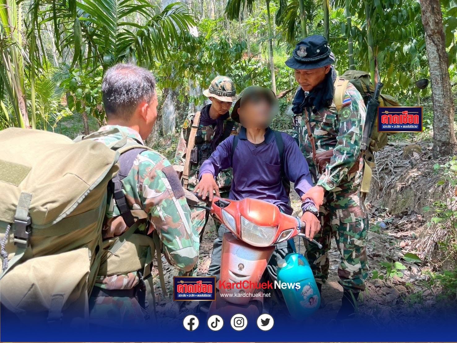 จากการรายงานแจ้งว่า เมื่อวันที่ 6 เมษายน 2569 เวลาประมาณ 11.00 น. พบชายต้องสงสัยขับขี่รถจักรยานยนต์ Honda Wave Z สีส้ม-ดำ สวนทางมาตามเส้นลำลองป่าไม้ในระยะกระชั้นชิด ท่าทางมีพิรุธและตกใจเมื่อเห็นเจ้าหน้าที่ ชุดจับกุมจึงแสดงตัวขอเข้าตรวจค้น