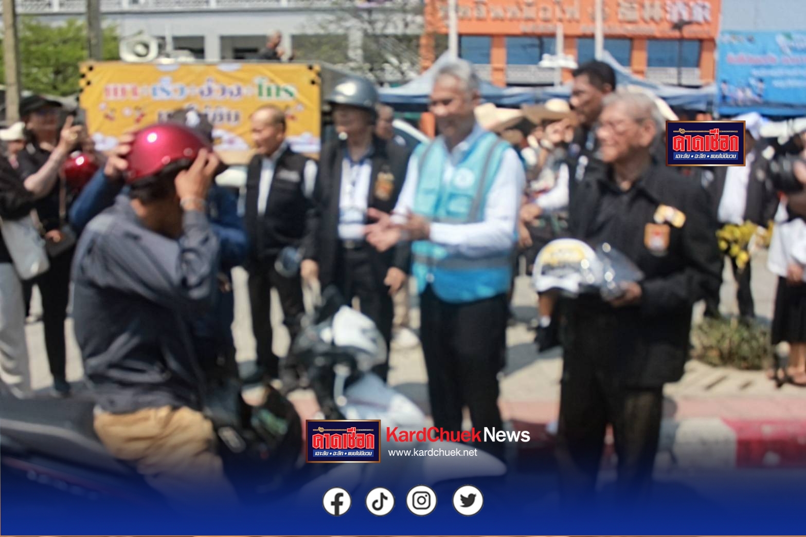 นอกจากนี้ร.ต.อ.ปิยะ รักสกุล อธิบดีกรมคุมประพฤติ ยังได้มอบหมวกกันน็อคให้กับผู้ขับขี่ จยย. ผ่านขบวนรณรงค์