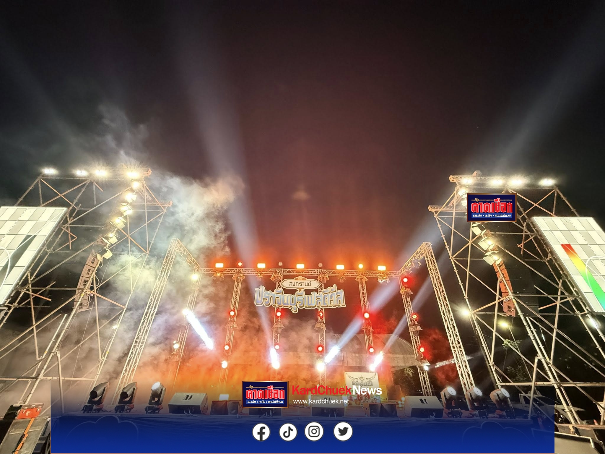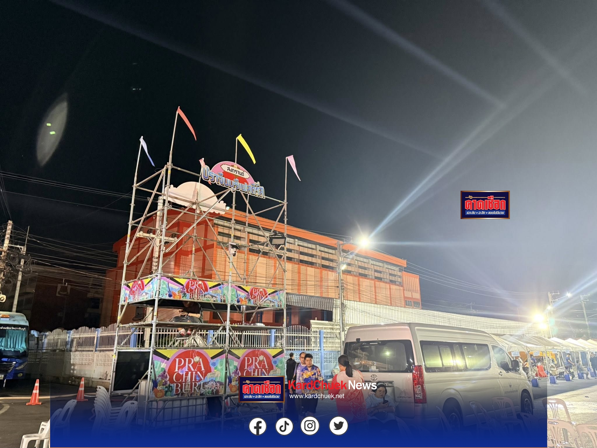 เมื่อเวลา 01.30 น. วันที่ 13 เมษายน 2569 ผู้สื่อข่าวรายงานบรรยากาศจากจังหวัดปราจีนบุรี ช่วงกลางดึกที่ผ่านมาพบว่ามีการเตรียมความพร้อมอย่างคึกคัก เพื่อเนรมิตพื้นที่ให้เป็นศูนย์รวมความสนุกแห่งเทศกาลสงกรานต์จากทั้ง 7 อำเภอของจังหวัด