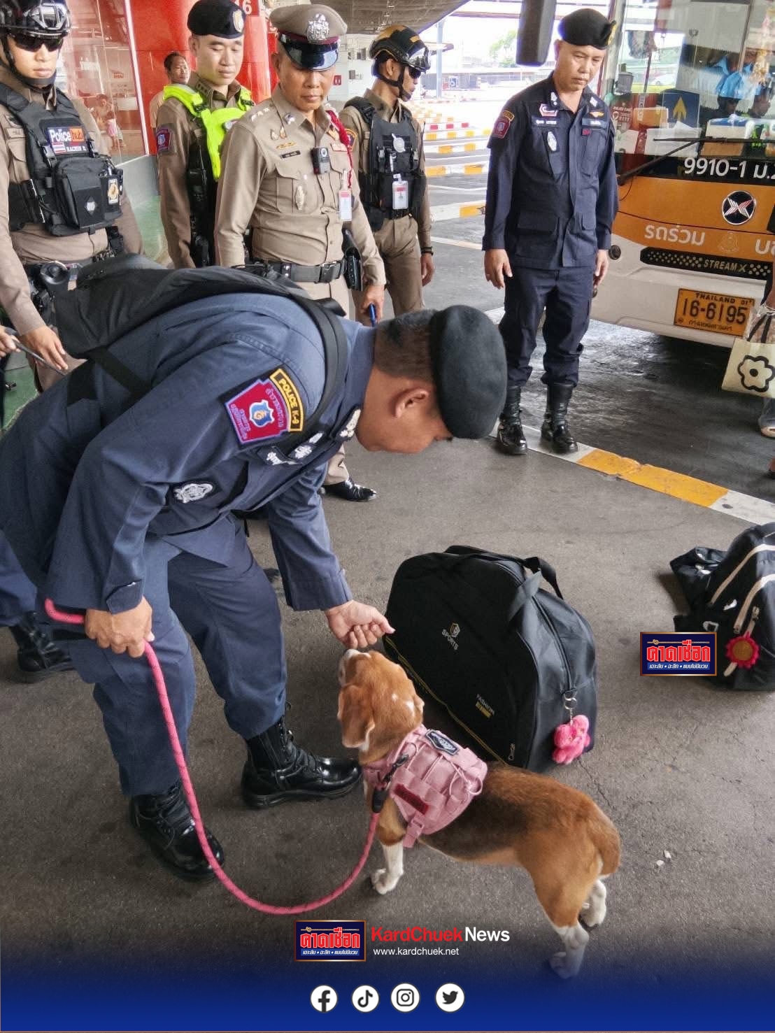รอง ผบ.ตร. สั่งตำรวจพร้อม K-9 ตรวจ 4 สถานีขนส่ง สกัดแก๊งค้ายาเสพติด “กองทัพมด” แฝงตัวช่วงคนกลับเข้ากรุงเทพมหานคร