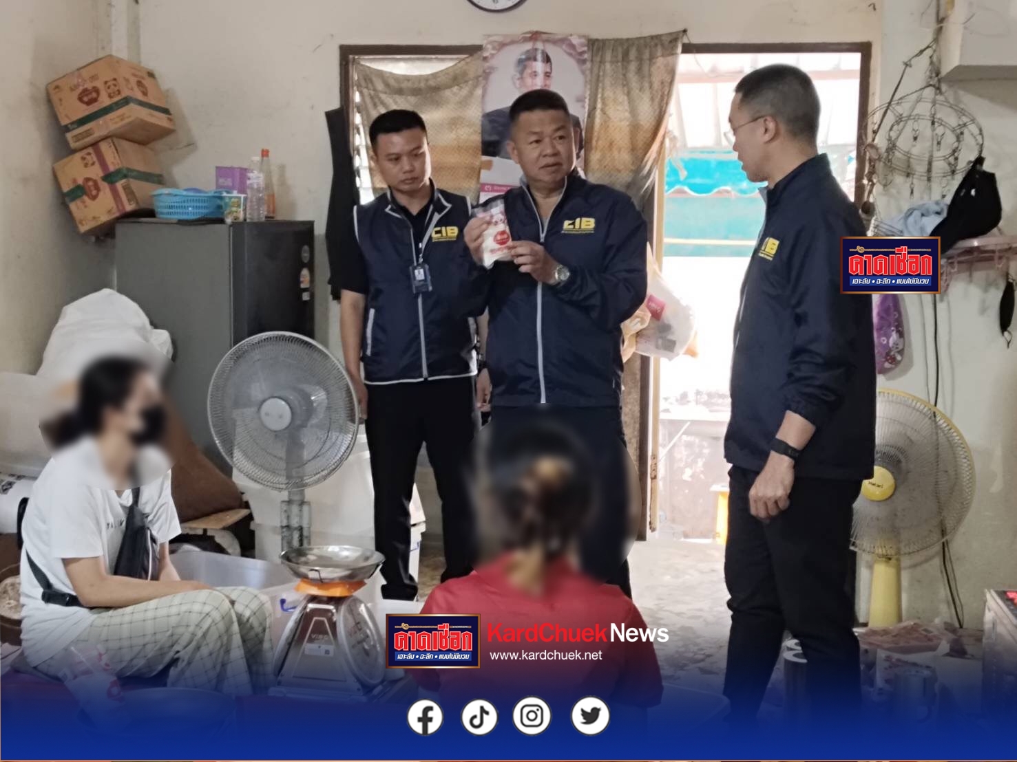 เจ้าหน้าที่ชุดจับกุม นำโดย ว่าที่ พ.ต.อ.ภูวเดช จุลกะเสวี ผกก.1 บก.ปอศ., พ.ต.ท.วิวัฒนชัย คลื่นแก้ว,พ.ต.ท.อัครพล เอี่ยมสำอาง รอง ผกก.1 บก.ปอศ. พร้อมด้วยกำลังเจ้าหน้าที่ตำรวจ กก.1 บก.ปอศ.