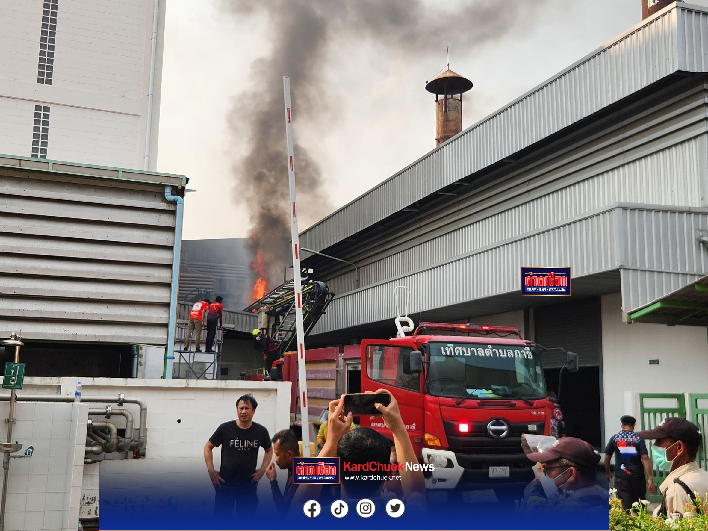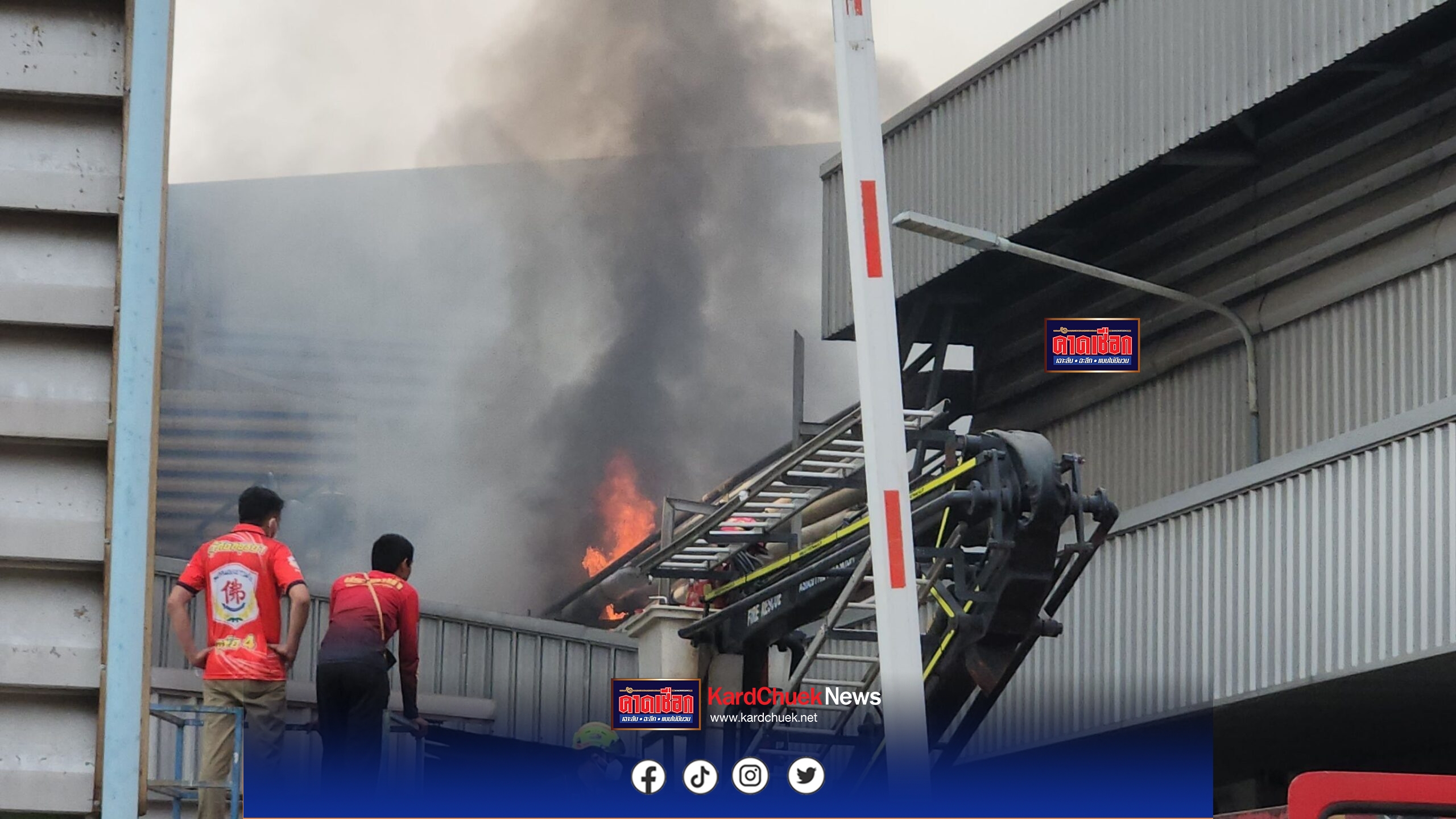 ระทึกไฟไหม้โรงงาน ในนิคมอุตสาหกรรมโรจนะ ได้ยินเสียงสัญญาณเตือนก่อนระเบิด เร่งระดมกำลังคุมเพลิง