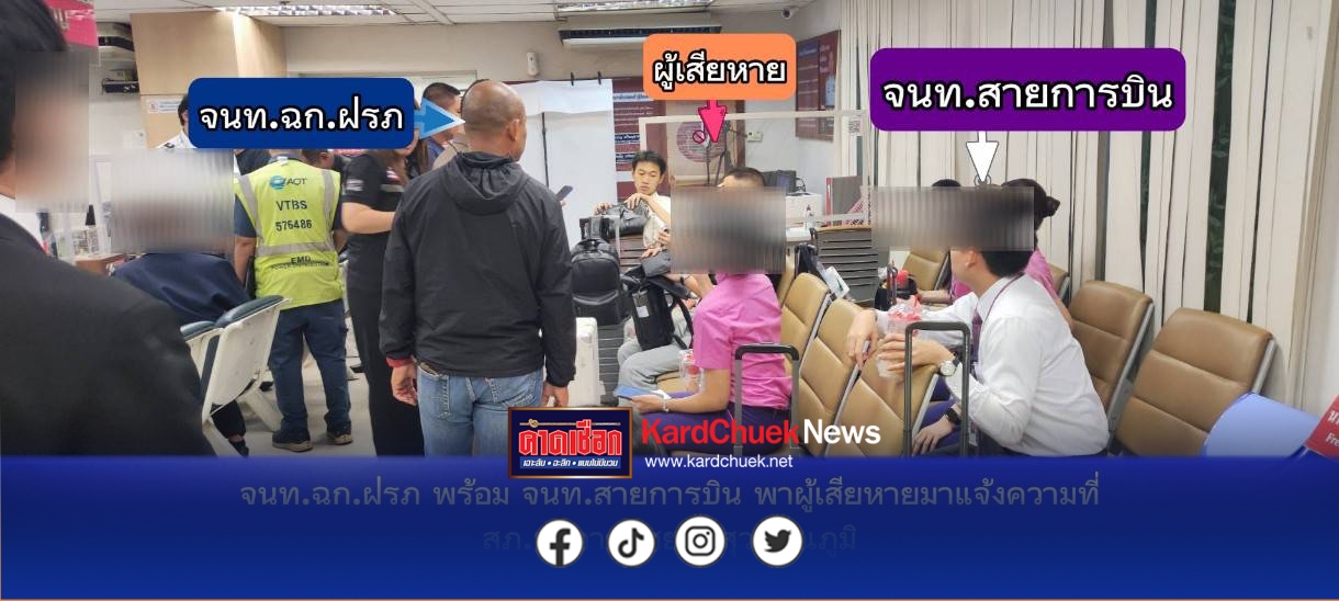 *****เมื่อวันที่ 13 เมษายน 2569 เวลา 15.20 น. ศูนย์รักษาความปลอดภัยท่าอากาศยานสุวรรณภูมิ ได้รับแจ้งจากเจ้าหน้าที่สายการบิน ว่ามีผู้โดยสารชาวจีนอายุ 45 ปี ซึ่งเดินทางมาจากเวียงจันทน์แจ้งทรัพย์สินสูญหายเป็นเงินสด