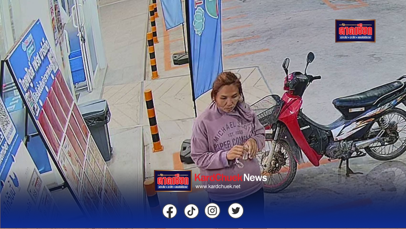 และล่าสุดเมื่อวันที่ 21 เม.ย. 69 เวลา 05.28น. น.ส.แพรวพราว ยอดอาจ อายุ 23 ปี ที่อยู่ 81 หมู่1 ต.ห้วยยาง อ.คอนสาร จ.ชัยภูมิ ผู้จัดการร้านไทยฟูดส์ เฟรชมาร์เก็ต บ้านแท่นหมู่ 3 ต.บ้านแท่น อ.บ้านแท่น จ.ชัยภูมิ ได้เดินทางมาพบ พ.ต.ท.พินิจ ทำทอง สว.(สอบสวน) สภ.บ้านแท่น พร้อมกับแจ้งว่า ในวันเวลาดังกล่าว ได้ มีชายหญิง 2 คนขี่ จยย.ฮอนด้าเวฟ สีดำแดง มาจอดที่หน้าห้าง จากนั้นฝ่ายหญิงได้นั่งรออยู่ที่รถ โดยฝ่ายชายเข้าไปในร้าน และได้นำถุงผ้า 2 ใบ เดินเลือกสินค้าใส่ถุงและนำมาวางที่เคาน์เตอร์ ให้พนักงานดูจากนั้นชายรายดังกล่าวก้ทำทีเดินดูสินค้าพอสบจังหวะพนักงานเผลอก็ได้มาหยิบเอาถุงผ้าที่ใสของอยู่ซึ่งวางอยู่บนเคาน์เตอร์เดินหลบหนีไป ซึ่งมีฝ่ายหญิงยืนรออยู่ที่รถเมื่อฝ่ายชายเดินออกมาก็สตาร์ทเครื่องรอจากนั้นก็ได้ขับรถหลบหนีไปอย่างลอยนวล
