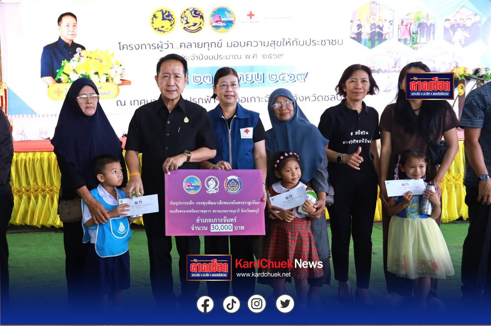 นายนริศ นิรามัยวงศ์ ผู้ว่าราชการจังหวัดชลบุรี เป็นประธานเปิดโครงการ “ผู้ว่าฯ คลายทุกข์ มอบความสุขให้ประชาชน” ประจำปีงบประมาณ 2569 ณ เทศบาลเมืองปรกฟ้า อำเภอเกาะจันทร์ จังหวัดชลบุรี โดยมีนางสุพิณญา นิรามัยวงศ์ นายกเหล่ากาชาดจังหวัดชลบุรี พร้อมด้วยนายอิสรา เจริญชาศรี รองผู้ว่าราชการจังหวัดชลบุรี นางสาวขวัญเรือน ศรีจันทร์ ปลัดจังหวัดชลบุรี นายกมลชนก กาญจนากาศ นายอำเภอเกาะจันทร์ หัวหน้าส่วนราชการ คณะกรรมการเหล่ากาชาดจังหวัดชลบุรี ผู้นำท้องถิ่น และประชาชน เข้าร่วมงานเป็นจำนวนมาก