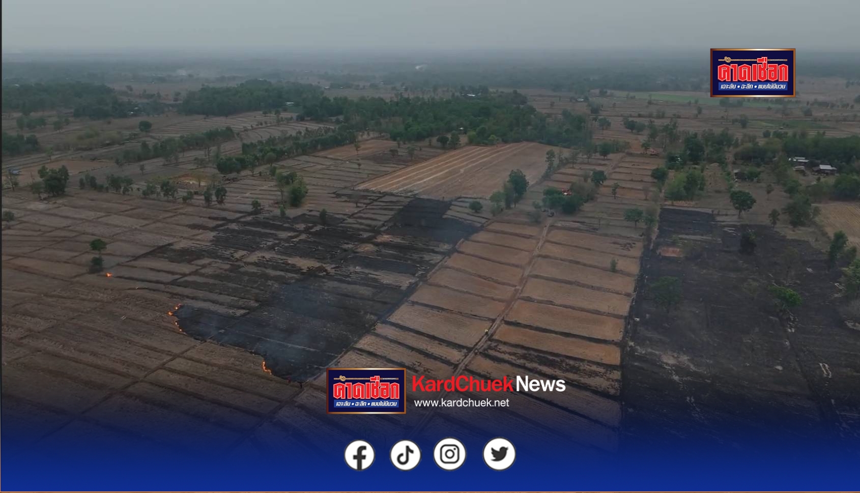 เกิดเหตุสลด ! ไฟไหม้ลามทุ่งนา อดีตผู้ใหญ่บ้านโนนงิ้ว สะพายถังฉีดน้ำไปดับไฟ แต่ถูกไฟคลอกเสียชีวิตในบริเวณที่นาของตัวเองนับเป็นอุทธาหรณ์