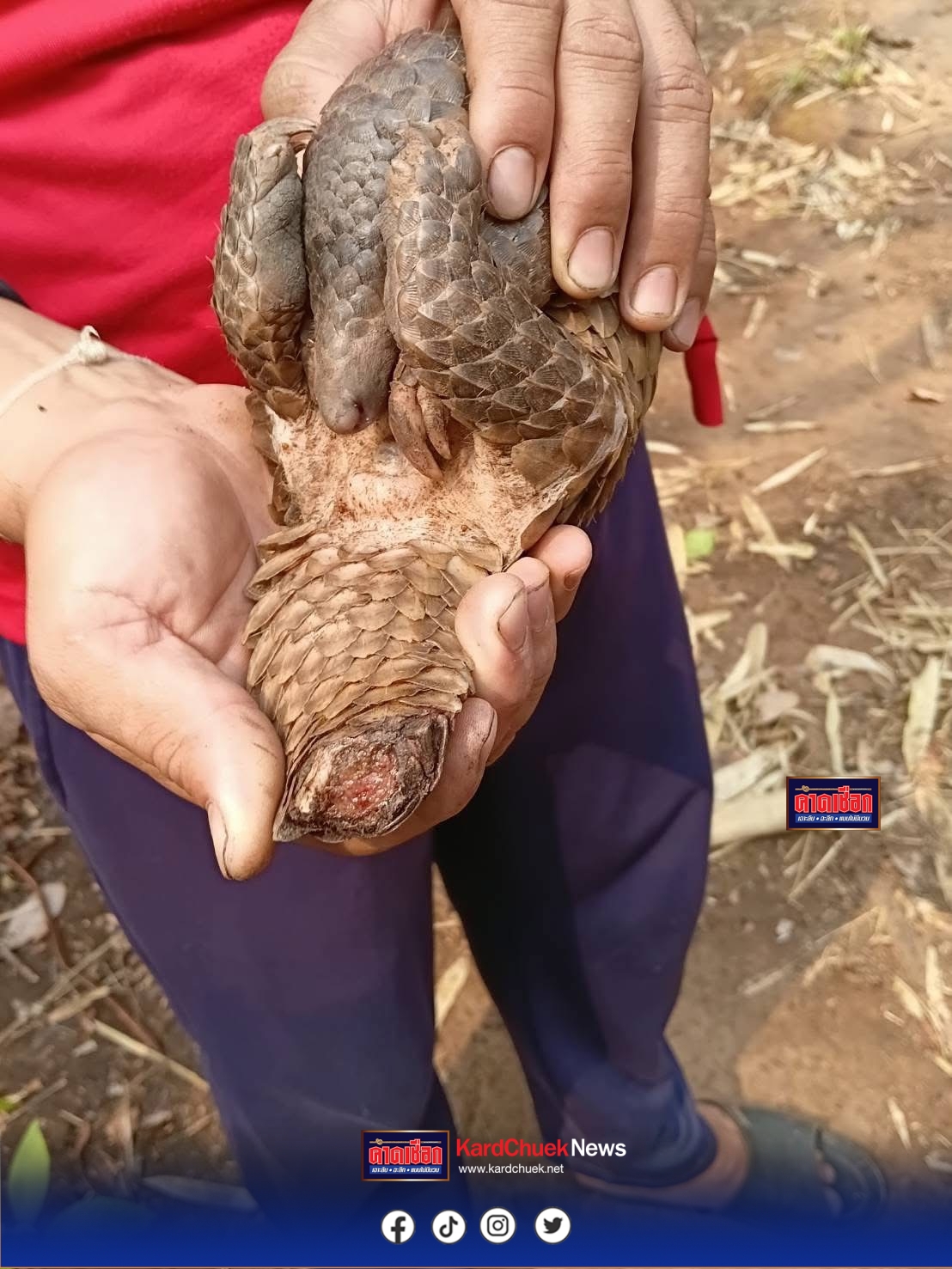 โดยล่าสุดเมื่อเวลา 09.15 น. วันนี้ ขณะเจ้าหน้าที่ชุดดับไฟป่าอุทยานแห่งชาติถ้ำปลา–น้ำตกผาเสื่อ กำลังปฏิบัติหน้าที่ดับเพลิงบริเวณทิศตะวันตกของวัดป่าถ้ำวัว ได้พบ “ลิ่น” (ตัวนิ่ม) เพศเมียตัวหนึ่งในสภาพน่าเวทนา นอนหอบอ่อนแรงซุกตัวหนีความร้อนอยู่ในซอกต้นไม้ เนื่องจากถูกเปลวเพลิงล้อมรอบจนไม่สามารถหลบหนีได้ จากการตรวจสอบเบื้องต้นพบร่องรอยบาดเจ็บสาหัส เกล็ดกลางหลังแตกผิดรูป และหางกุดแหว่งคล้ายถูกของมีคมตัด ซึ่งเป็นบาดแผลที่เกิดจากทั้งน้ำมือมนุษย์และไฟป่าที่ลุกลาม