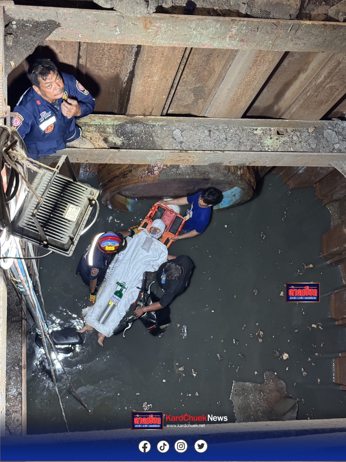 นนทบุรี ลุงวัย 50 ปี ขับขี่รถจยย.กำลังไปส่งน้องสาว มองไม่เห็นทาง พุ่งตกบ่อลึก 15 เมตร น้องสาวเจ็บหนัก กู้ภัยช่วยรอดหวุดหวิด