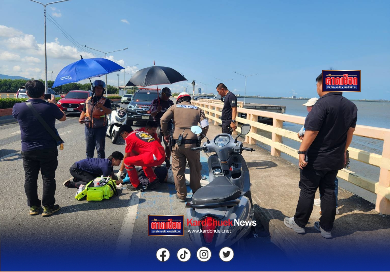เมื่อเวลา 09.30 น. วันที่ 28 เมษายน 2569 เกิดเหตุรถจักรยานยนต์ล้มคว่ำบนสะพานใหม่ชลมารควิถี ตอน 1 ตำบลบางปลาสร้อย อำเภอเมือง จังหวัดชลบุรี โดยมีผู้ได้รับบาดเจ็บมีอาการชักเกร็ง ท่ามกลางสภาพอากาศที่ร้อนจัด และยังไม่มีเจ้าหน้าที่กู้ภัยเข้าพื้นที่ในขณะนั้น
